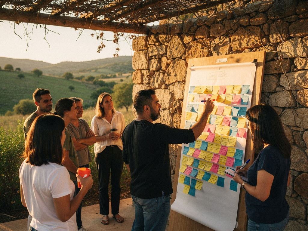 Un diagnóstico de cómo opera tu empresa y un workshop para que el equipo mejore cómo trabajan juntos.